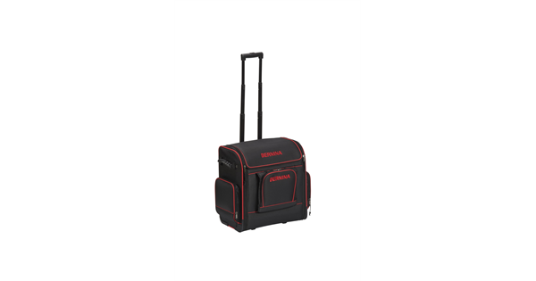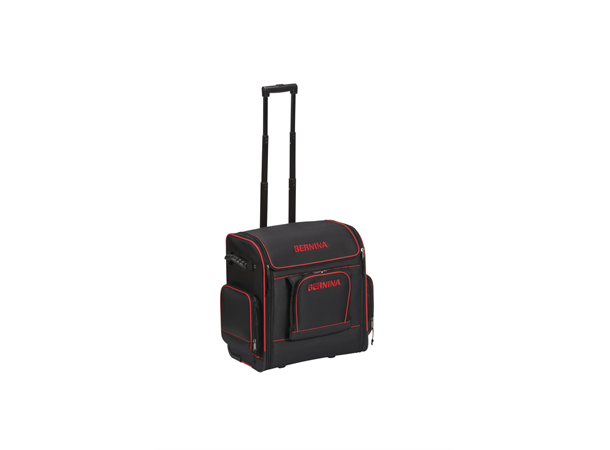 Flot udført Trolley rullekuffert, med kraftige håndtag, let-tilgængelig ind og ud-tagning afde store symaskiner. Gode lommer til tilbehør. Og selvfølgelig masser af beskyttende foring, der holder maskinen intakt. L modellen passer til 5-serien & mindre symaskiner.
