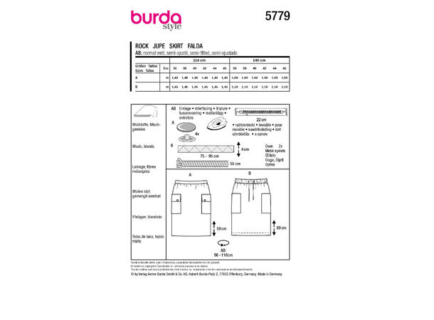 Burda symønster 5779 - Skjørt med påsydde lommer på sidene