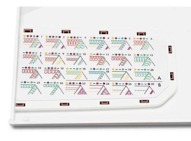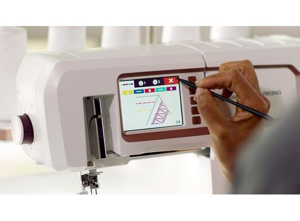 Når du velger sømmen du vil bruke, stilles optimal trådspenning og anbefalt stinglengde med mer, inn for deg automatisk på den praktiske berøringsskjermen i farger.
