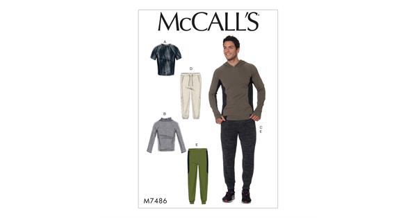 Overdeler med raglan ermer, variasjoner i ermelengde, hals og sidepaneler. C har hette og kengerulomme. Bukser med lommer og snøring i livet. D har strikk i beina.