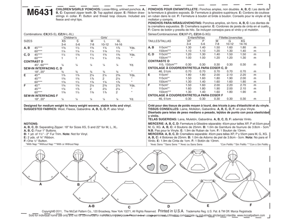 McCall's symønster 6431 - Poncho til barn