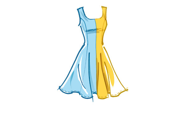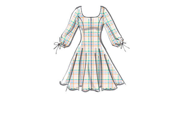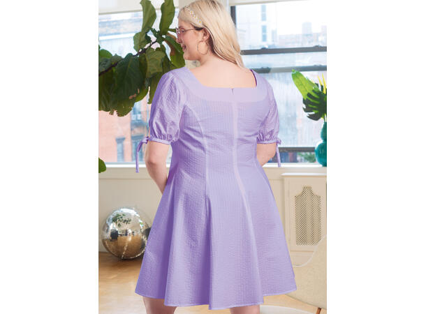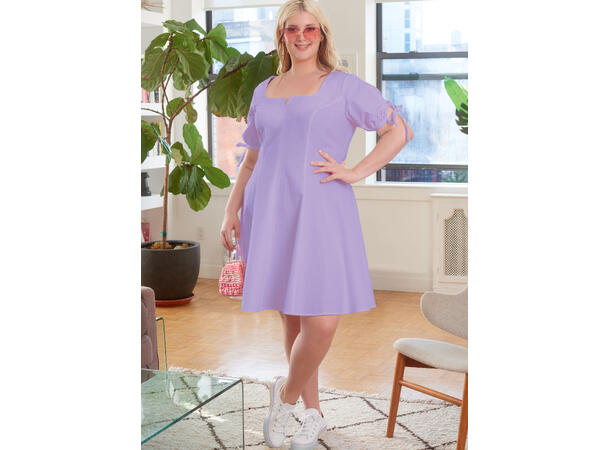 Fin utsving kjole som kan lages fra ungdom til store størrelser. Armevariasjoner og kan lages med kotrastfarger.