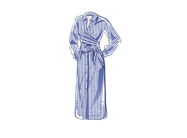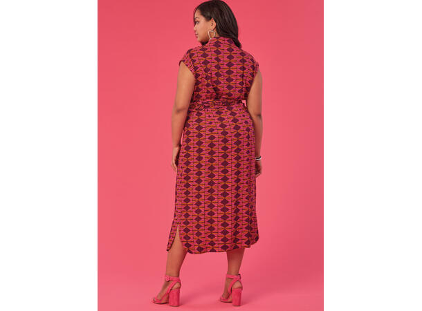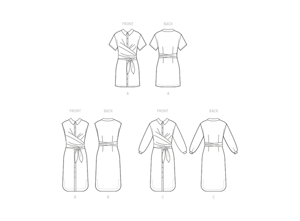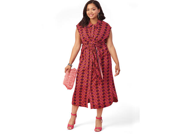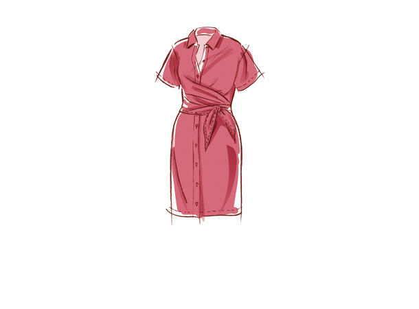 Flott kjole med knyting rundt livet. Kjolen har krage og kna lages med korte og lange ermer og flere lngdevariajsoner på skjørtet.