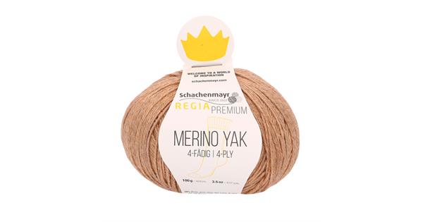 Regia Premium Yak fra Schachenmayr består av ull, polyamid og yak, og er et delikat strømpegarn. Det er vakkert melert pga den naturlige brune fargen fra de ufargede Yak-fibrene.