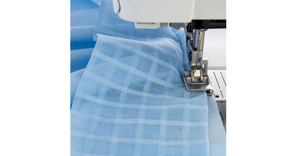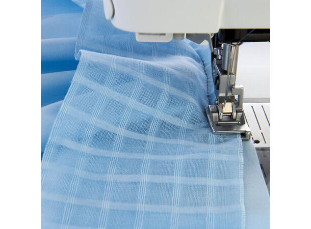 Rynking er en klassisk pynteeffekt. Det er lett å få til med denne spesialfoten, noe som er spesielt nyttig hvis du vil sy garneringer på sofaputer og gardiner eller rynkesømmer på barneklær. Du kan sy sammen og rynke to lag med stoff samtidig, raskt og enkelt.