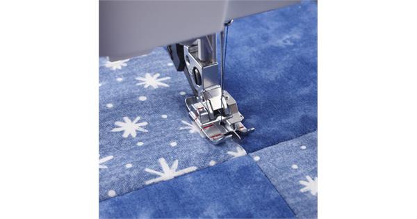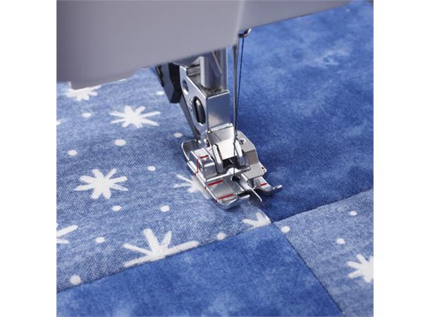 Stitch-in-Ditch-foten er designet for å hjelpe deg med å oppnå perfekt quilting på toppen av quilten. Måleren glir lett over sømmen for perfekte sømmer "in the ditch".