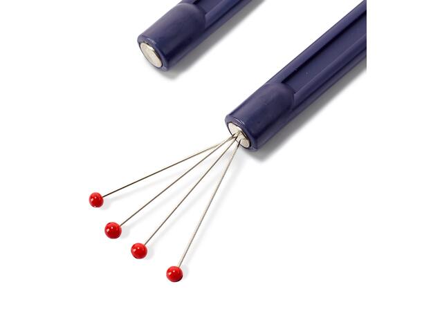 Med hesteskomagneten kan du enkelt og raskt samle opp knappenåler, eller andre ting av metall.