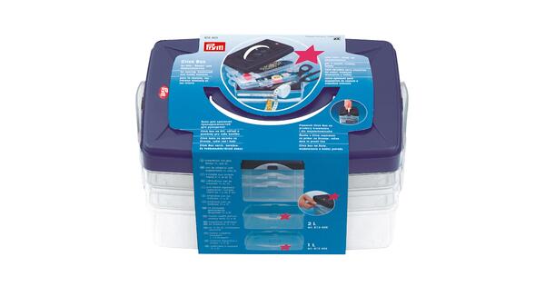 Dette syskrinet kan man bruke til å lagre sine, sy,- broderi og stikkesaker. ett hvitt plast håndtak er nedfelt i lokket.
