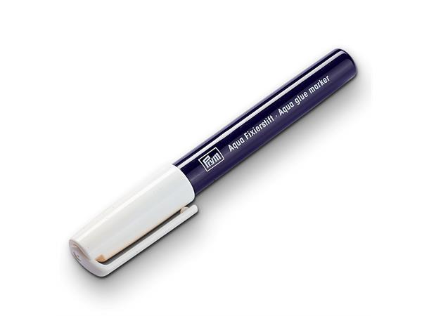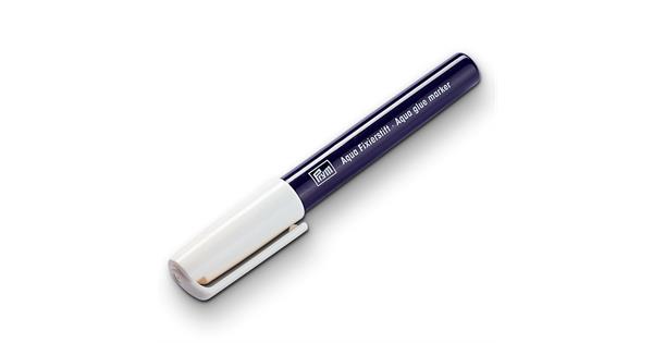Denne markørpennen inneholder lim som hjelper til å holde kanter, stoffer, eller bånd der de skal uten hjelp av knappenåler.