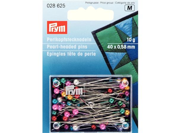 Disse knappenålene er 40 x 0,58 mm store, med fargerike perlehoder.