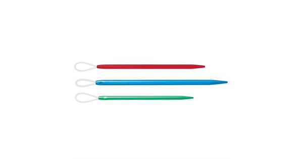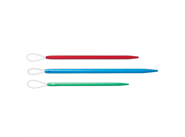 Sett med tre ullnåler i forskjellige størrelser til å brodere eller sy på ulltøy og stoffer. Nålene er laget av aluminium, har ett fleksibelt nylon øye og en avrundet tupp for å ikke skade ullen du jobber med.