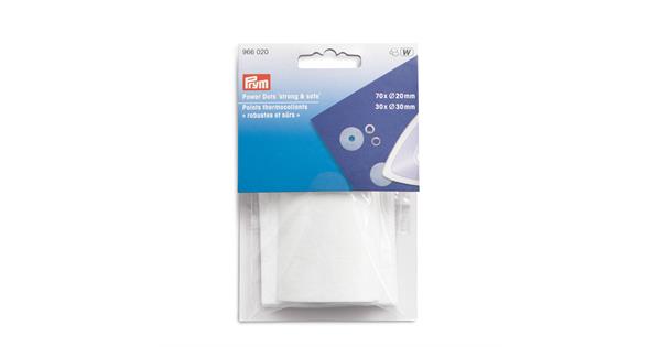 Et typisk scenario: tynne og skjøre stoffer som revner ved maljene eller trykknappene etter bruk. Med Pryms Power Dots vil ikke denne irritasjonen lengre være et problem! De runde vliselinbitene er perfekte til å stabilisere og forsterke stoffet akkurat rundt maljen eller trykknappen.