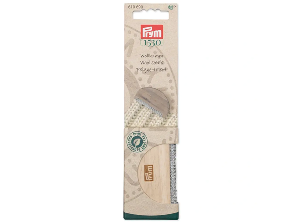 Denne ullkammen er del av Prym sin bærekraftige linje med strikke- og sytilbehør. Dette betyr at treverket er laget av et bærekraftig ubehandlet gummitre og fremstilt i en miljøvennlig prosess. Den flotte pakningen er like miljøvennlig, og er laget i en flott resirkulert papp.