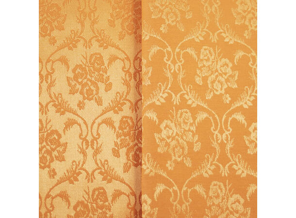 Flott bomullsbrokade som kan brukes til bunad, men også til andre plagg og interiør. Stoffet har jaquard veving og er derfor like fin på rettsiden som vrangsiden; ene siden er blank med matte detaljer mens den andre siden er matt med blanke detaljer.