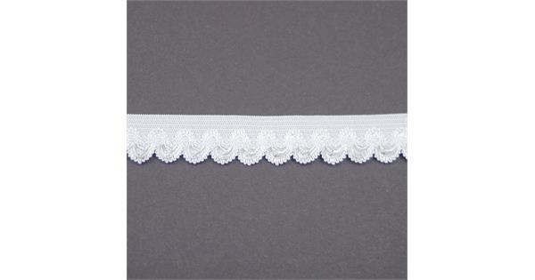 Flott dekorativ strikk med blondekant. Den myke kvaliteten gjør den utmerket til undertøy eller for eksempel stropper til undertopper.