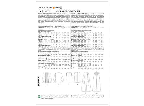 Vogue symønster 1620 - Jakke, Topp og Bukse