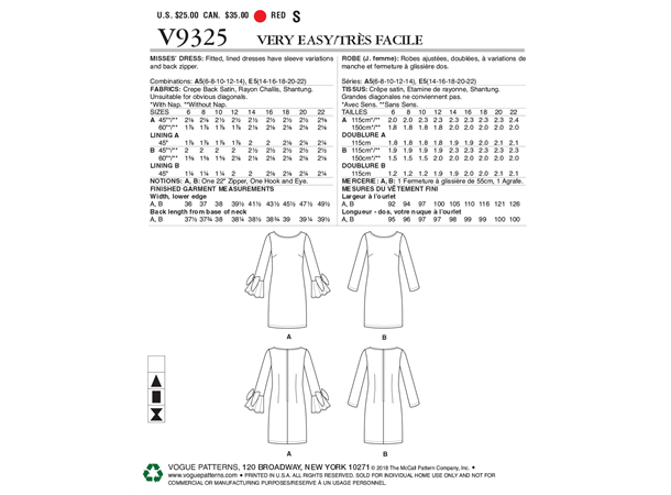 Vogue symønster 9325 - Smal kjole med lange ermer