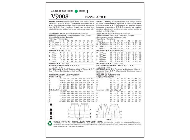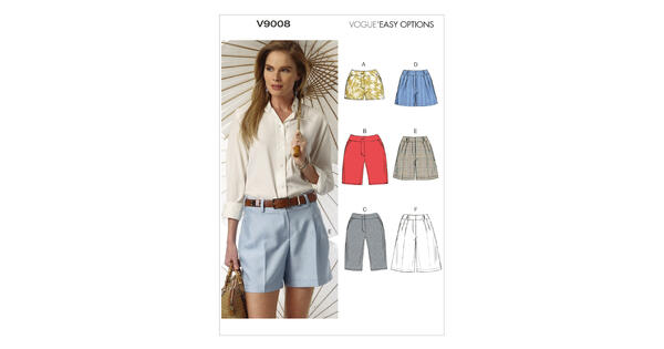 Capri eller plissert shorts med linning og lommevariasjoner. Mønster på 6 forskjellige varianter