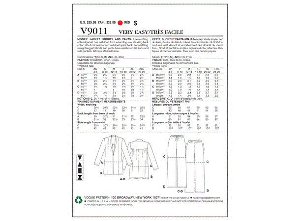 Vogue symønster 9011 - Blazerjakke, bukse og shorts