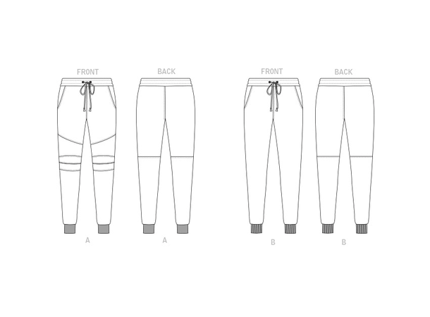 Formsydd joggebukse med ribb i buksebeina, elastisk liv med snor, lommer i siden og søm på bakside av kne.