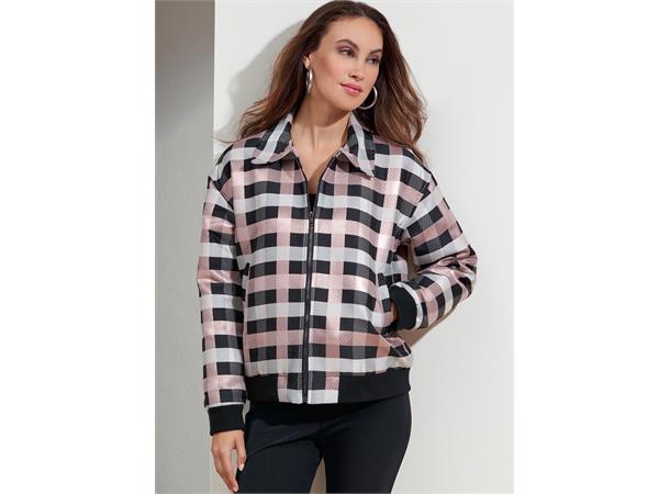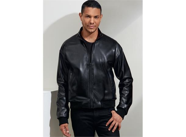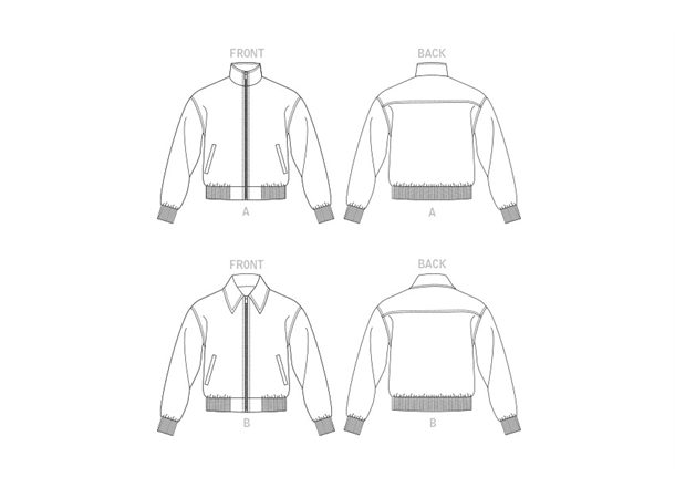 Løstsittende, fôret unisex bomberjakke med lave skuldre, bærestykke i ryggen, passepolierte lommer, delbar glidelåslukning og ribbekant. Jakken kan lages med stående eller liggende krage.