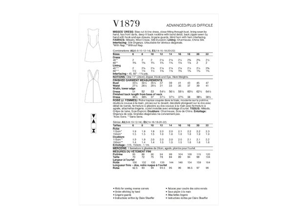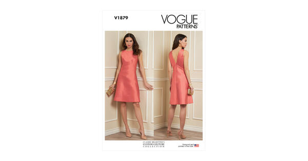 Vogue symønster 1879 - Knelang kjole med v-utringning i ryggen