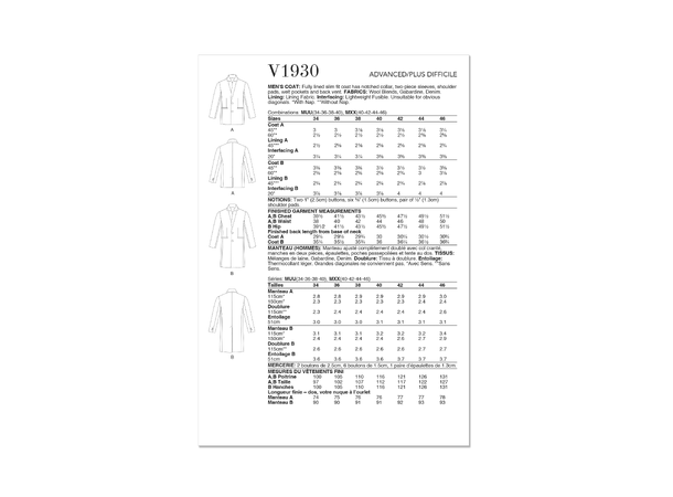 Vogue symønster 1930 - Frakk til herre