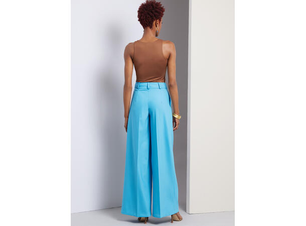 Plissert bukse og shorts med brede ben, glidelås- og knappelukking foran. Har ommer i sidene og beltehemper. Kan lages med cargolommer.