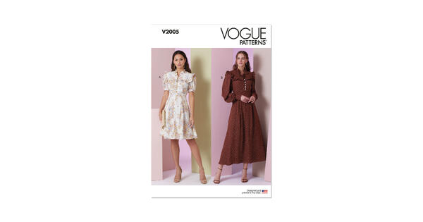 Fine kjoler som sitter etter etter over overdelen og midjen (fit and flare), knappelukking foran, glidelåslukking bak, volangkant langs halsutringning, over brystet og skulder. Markert midje, forlengede skuldre og rynket skulder. Kan lages med korte eller lange ermer og to lengder på skjørtet.